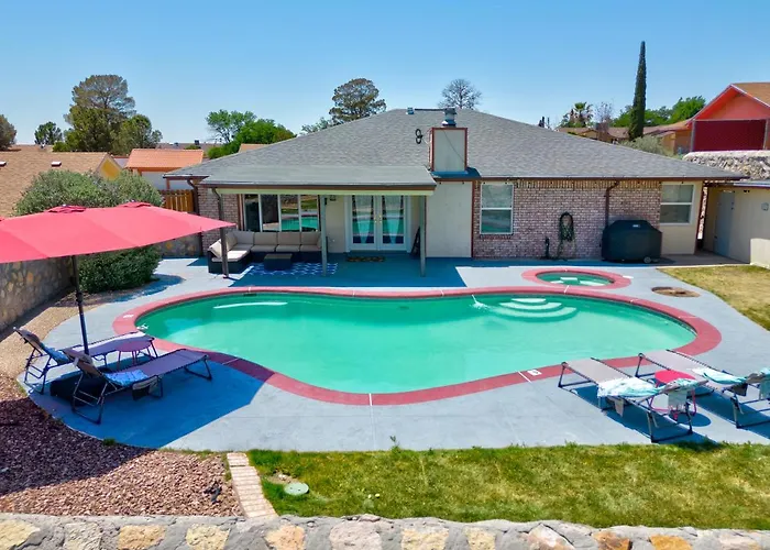 Microondas, chaleira elétrica e refrigerador, bem como outras comodidades auto-suficientes, como máquinas de café/chá, são fornecidos numa cozinha totalmente equipada. Home With Mountain View/Pool/Tub está localizada a cerca de 25 minutos de carro do aeroporto em El Paso Internacional.